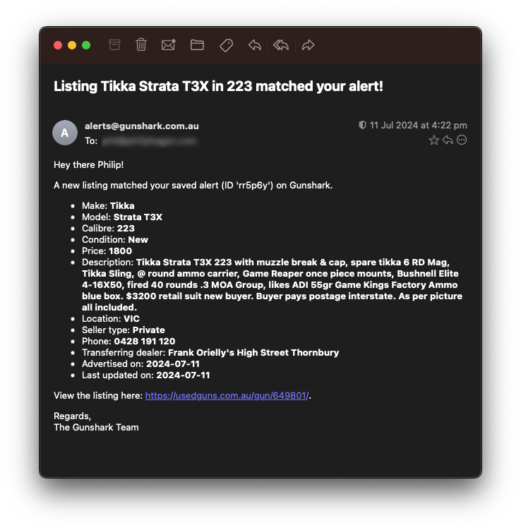 Get notified as soon as an item you're interested in is posted on usedguns!